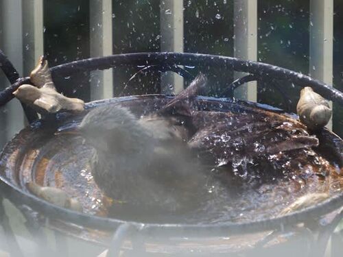 〈11月1日撮影〉 ヒヨドリが水浴び中ですが (長風呂ではない方の子ですね) ん?背後にいるのは… あっ! 雀が邪魔してます! 追い払ったと思ったら もう一羽 うーん、なかなかしぶとい… このヒヨドリは 目のキョロっとした、おとなしい方の子ですね (多分…