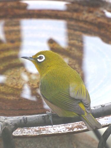 11月上旬のバードバスに 久しぶりに現れたメジロです あっ!せっかく来てくれたのに お水が少ない… ちょっとガッカリしてる? ごめんねぇぇ… つつつ…と 底の方まで降りて なんとか水浴び… 夫曰く 小さな鳥は あまり深くない方が安心なんじゃない?って そう…