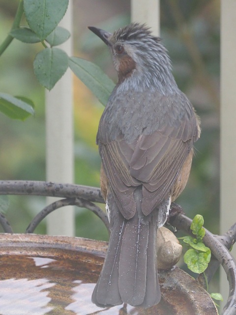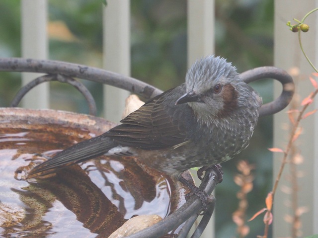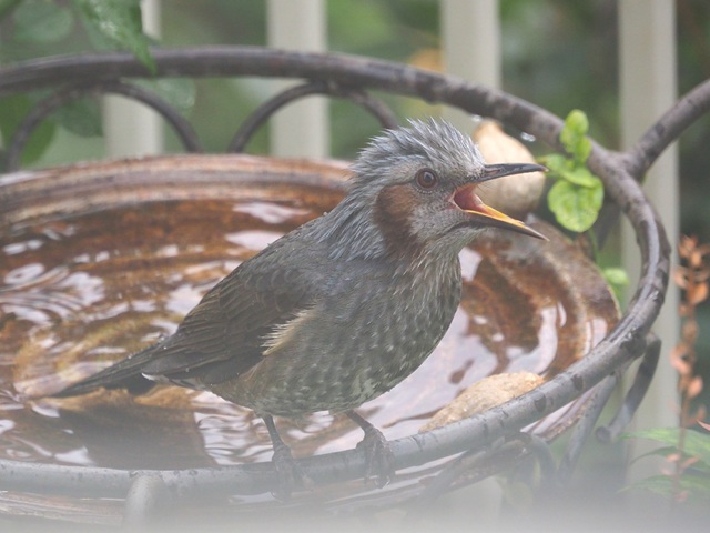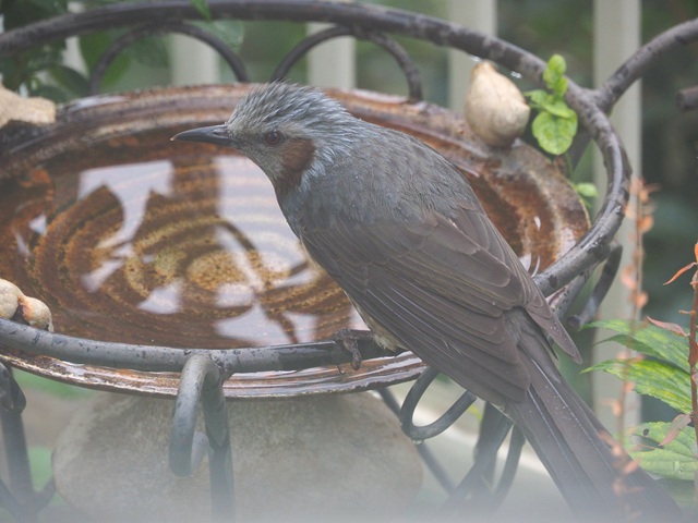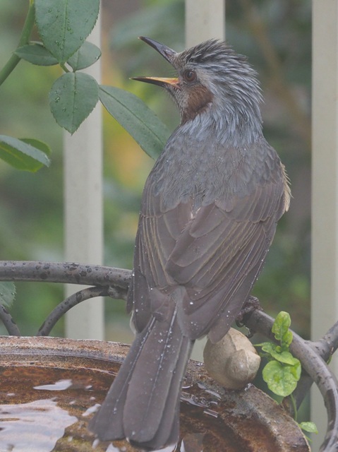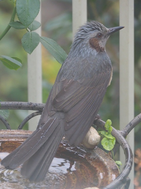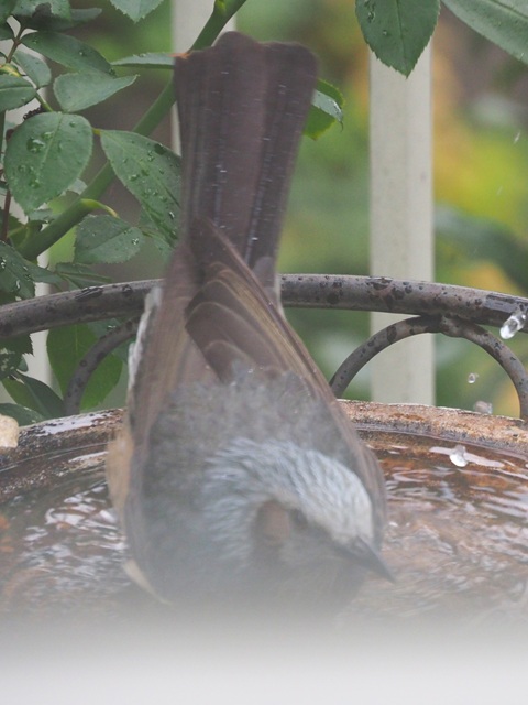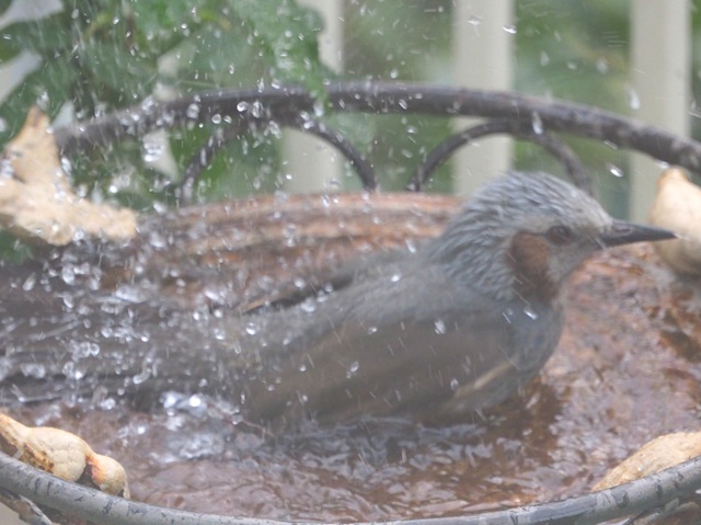 バードバスの常連にヒヨドリが加わって